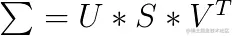 矩阵U 包含我们要找的所有必要的向量。如果我们的X 矩阵是p乘p,那么U也将是p乘p。这些向量是我们新维度的代表向量。通过选择前k列,我们将得到我们需要的向量。有了一个新的矩阵来转换我们的X点,我们将在这两个矩阵之间做点 乘即可。