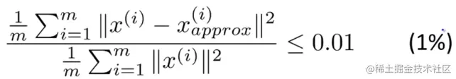 这个量告诉我们,我们改变或移动了多少个点?我们的真实点和近似点之间的距离是多少?这就是投影距离。我们将取所有例子的平均投影误差,并将其除以我们数据集的平均向量大小。如果我们只改变了一点点,那么很好,我们只改变了1%,其他99%保持不变。