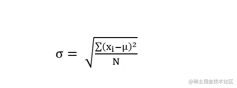 其中N指的是人口规模,xi指的是人口中的每个值,mu指的是人口平均值。在我们的例子中,加纳人的估计值的方差是49,尼日利亚人的估计值的方差是16,方差的平方根给出了标准差,即标准差分别为7和4。