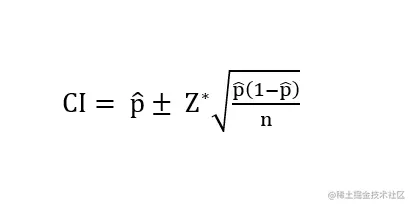 寻找比例的置信区间与寻找平均值的置信区间几乎相似,唯一的区别是用一个新的项目来代替标准差,可以在下面的公式中看到。