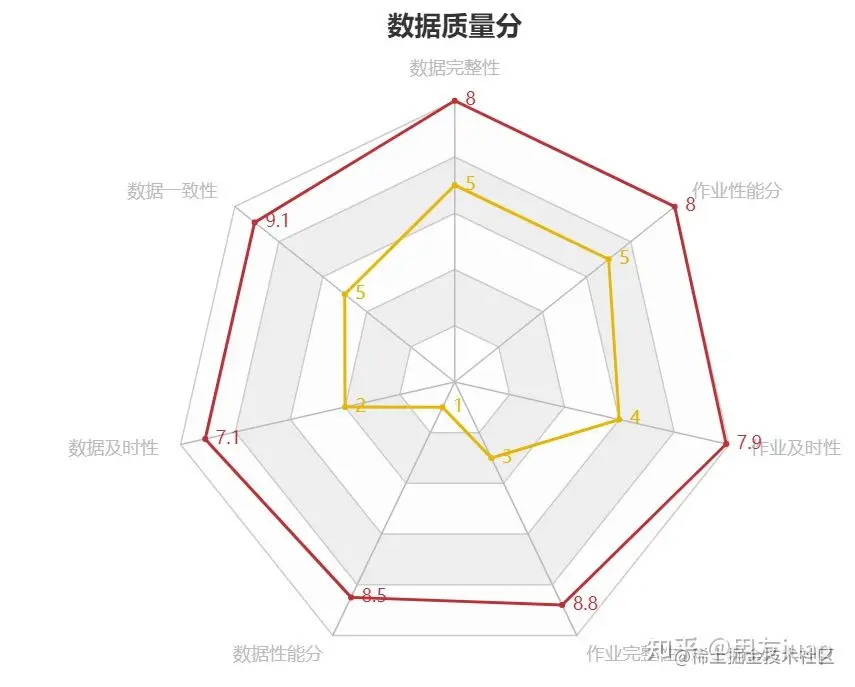 通过数据质量雷达图,定期进行数据和任务质量打分,综合考察数据质量效果。