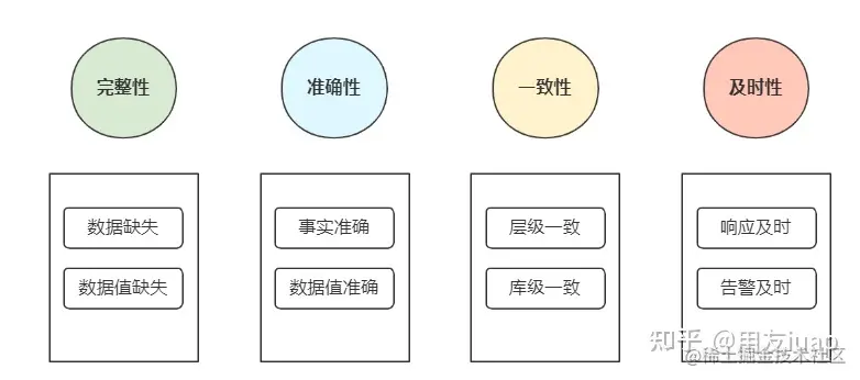 一般采用业内常用的标准来衡量数据质量的好坏:完整性、准确性、一致性和及时性。