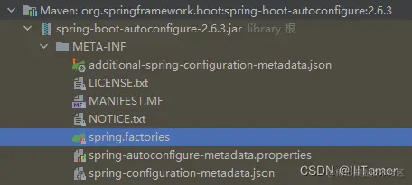 跳转到 SpringFactoriesLoader#loadFactoryNames,查看方法注解我们得知,所有定义的默认工厂实现都在 "META-INF/spring.factories" 这个文件中配置,找到 spring-boot-autoconfiguration 包下的该文件,至此得解。