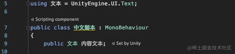使用编辑器打开刚刚创建的”中文脚本.cs“文件: