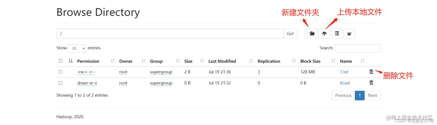 访问HDFS集群的页面