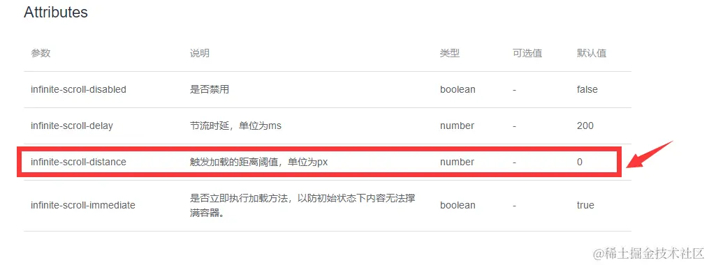 3)查询文档发现,默认值是必须到底才会触发,但是有些客户端分辨率或者浏览器兼容性问题,不一定触发到底事件,如图: