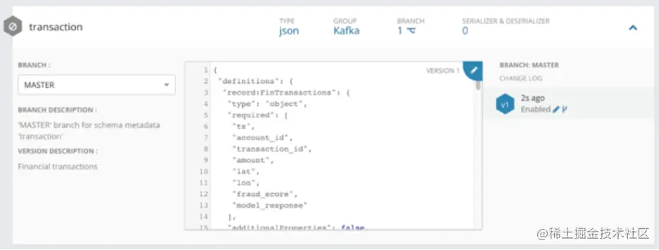 Cloudera 数据平台 (CDP) 附带 Schema Registry 服务。对于我们的示例用例,我们已将事务数据的模式存储在模式注册表服务中,并将我们的 NiFi 流配置为使用正确的模式名称。NiFi 与 Schema Registry 集成,它会自动连接到它以在整个流程中需要时检索模式定义。