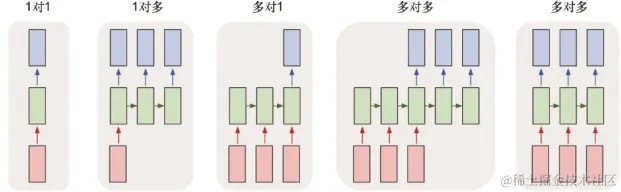 人类通过从左到右阅读词序列来理解文本,并构建了可以理解文本数据中所有不同内容的强大模型。RNN的工作方式有些许类似,每次只查看文本中的一个词。RNN也是一种包含某特殊层的神经网络,它并不是一次处理所有数据而是通过循环来处理数据。由于RNN可以按顺序处理数据,因此可以使用不同长度的向量并生成不同长度的输出。图6.3提供了一些不同的表示形式。