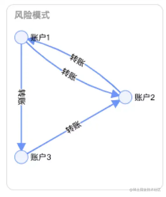 上述模式可以抽取成三个节点形成的环路,且环路上还存在平行边。使用该模式在原图上进行模式匹配算法计算,得到了一个相似的结构与刘大妈相关,即可猜测刘大妈很有可能也已经被骗了。
