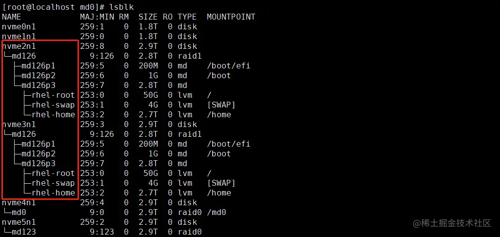 VROC与软RAID都使用mdadm的命令进行管理,VROC需要安装相对应版本的mdadm rpm包。