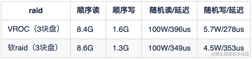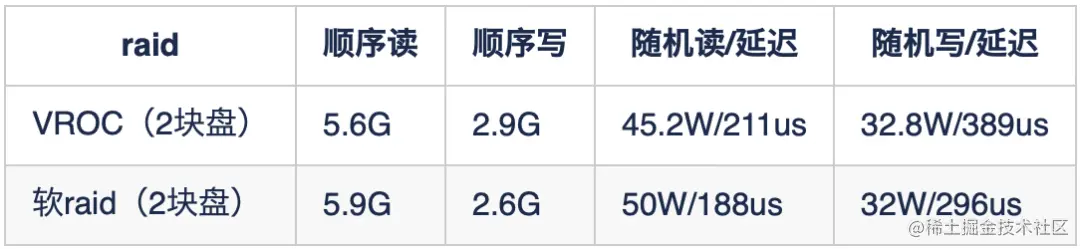 VROC与软RAID这么相似,那么在性能上有什么差距吗?我们可以通过实验看一下