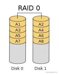 将数据分成若干相等大小的数据块,把他们写在不同的硬盘上,以独立的方式实现多块硬盘的并读访问,并发执行I/O操作。基本能够发挥出所有硬盘的性能,但是RAID0没有冗余机制,硬盘越多固然性能越好,然而出现故障导致卷组不可用的概率也越高。建议配合上层应用能够提供冗余的场景一起使。