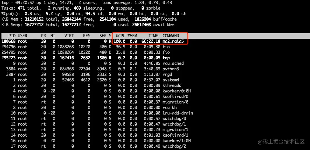 VROC与软RAID组建的raid5各项性能基本一致,但是两者的写性能都是偏低的,通过观察cpu的使用率可以发现,VROC与软RAID都是单核进程,所在core的使用率也已经被打满了,cpu的性能也是制约RAID5写性能的一项因素