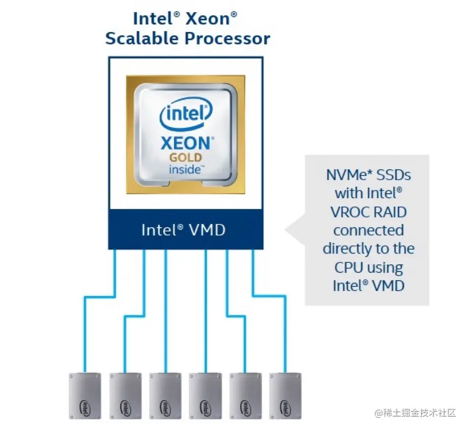 目前,英特尔至强可扩展处理器基本都支持VMD,但是并不是cpu支持就可以使用VROC了,需要满足以下几个条件: