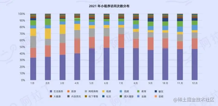 2022年初的微信公开课通报的数据年初日活量达到4.5亿,1 月 17 日阿拉丁研究院发布《2021 年度小程序互联网发展白皮书》显示,2021 年全网小程序数量就已超700 万,其中微信小程序开发者突破300 万。日均使用次数同比增长 32%,活跃小程序则增长 41%,小程序生态已塑造出新的增长空间。