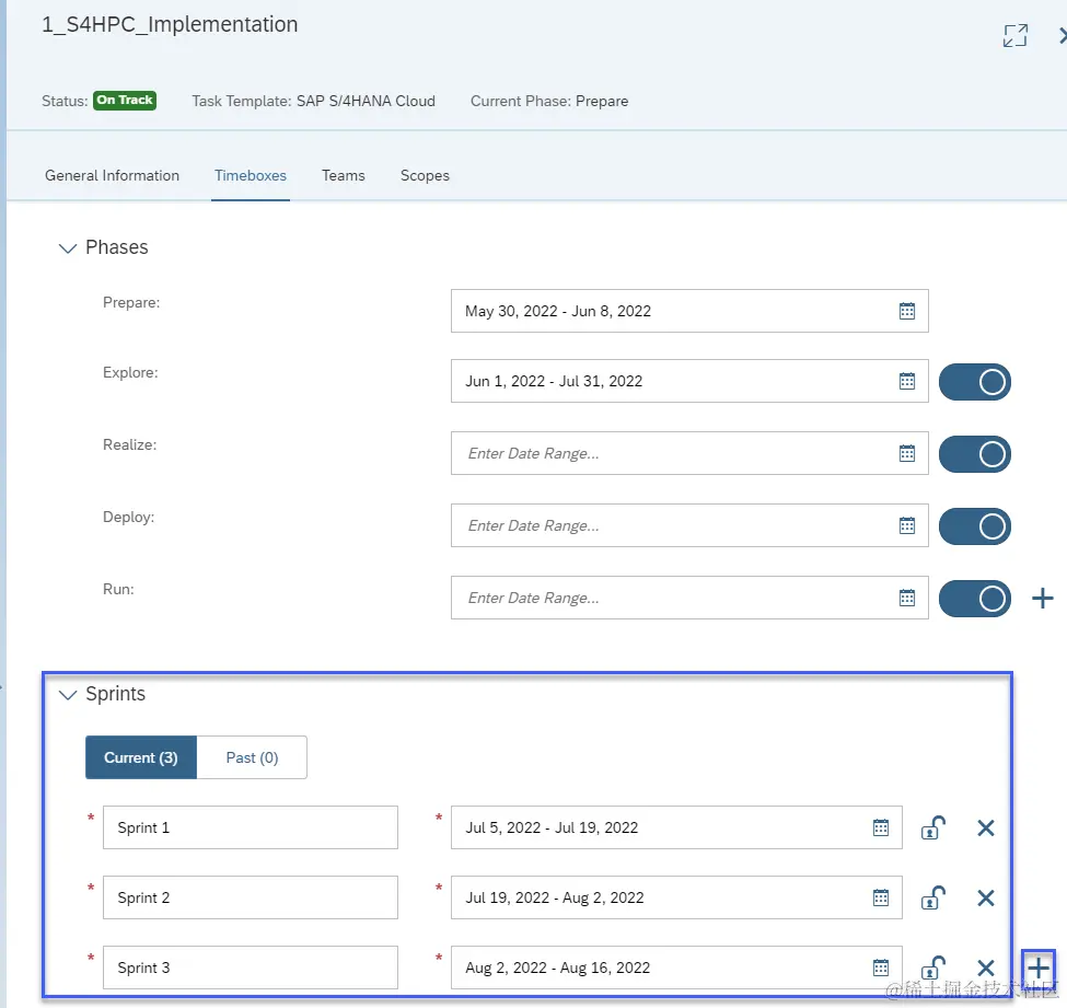 切换到Sprint会使我们进入更低的颗粒度。我们可以在早期设定的项目中创建SAP云ALM 的Sprint。