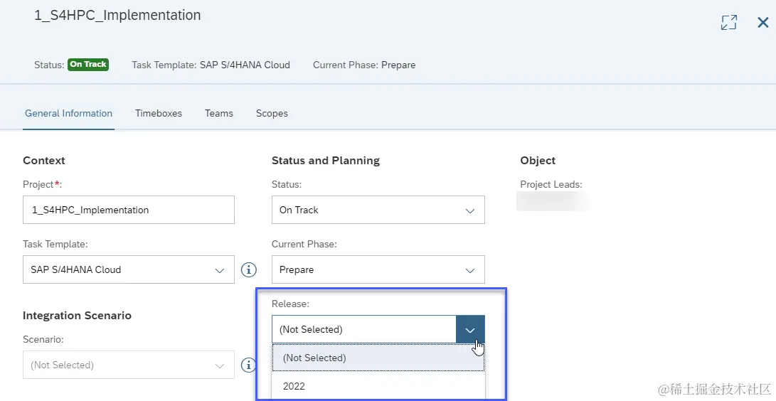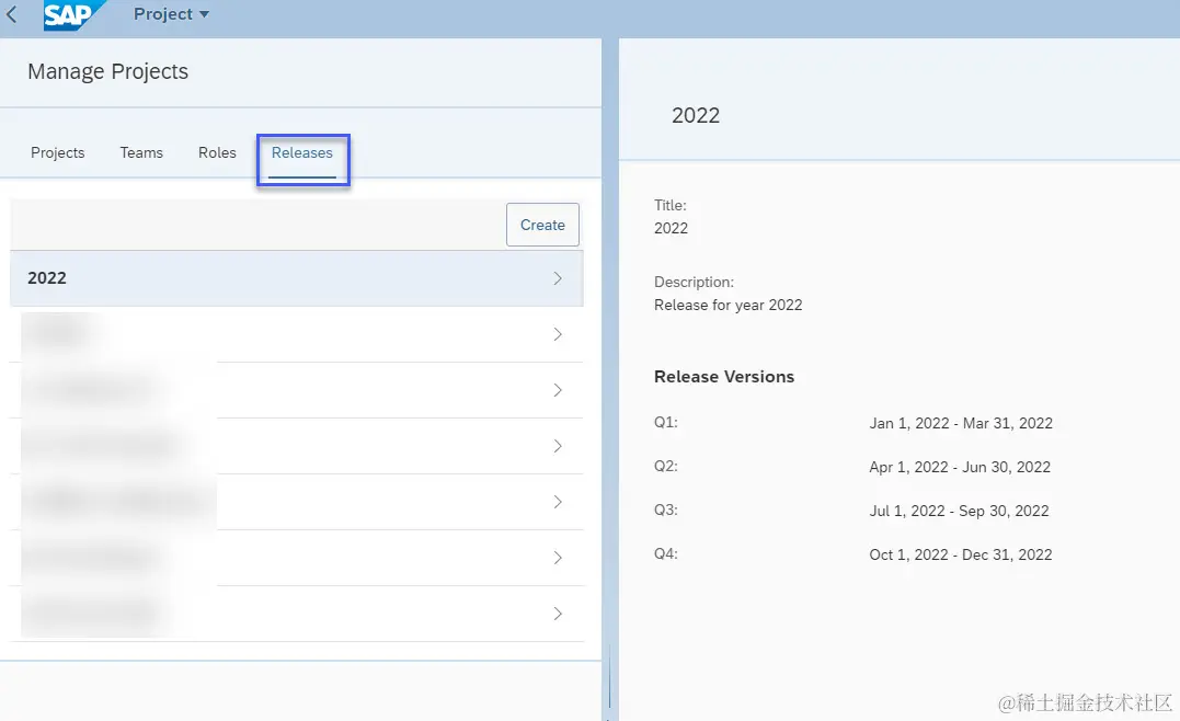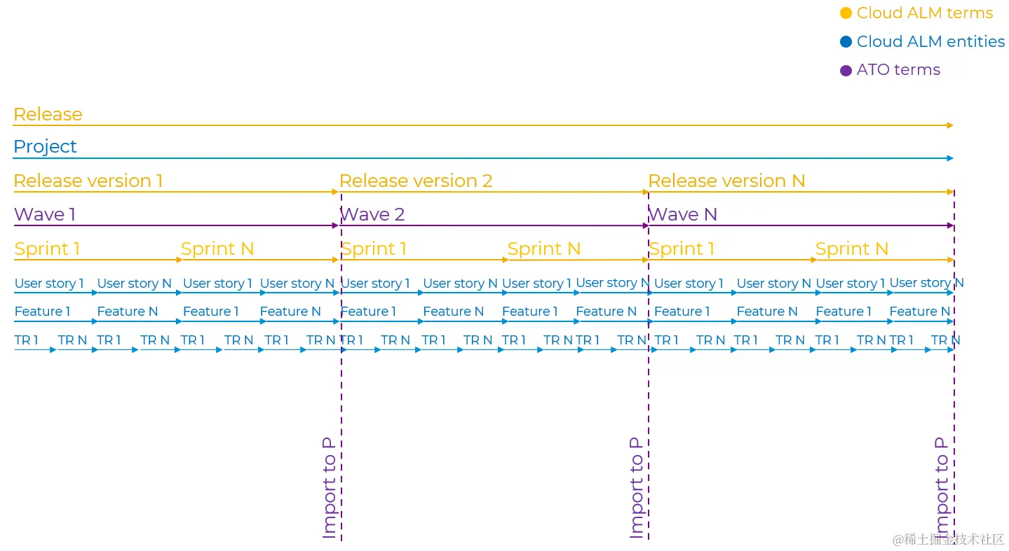 从时间框架的角度来看,SAP Cloud ALM中提供的最大的实体是发布。你可以在 "项目"应用程序中创建发布。