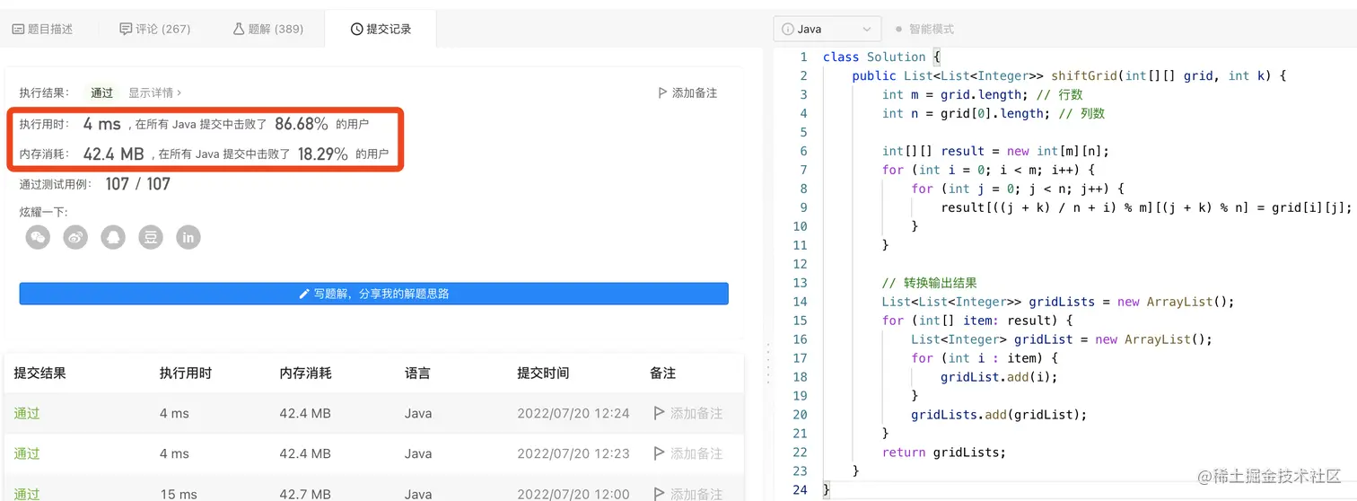 给你一个 m 行 n 列的二维网格 grid 和一个整数 k。你需要将 grid 迁移 k 次。