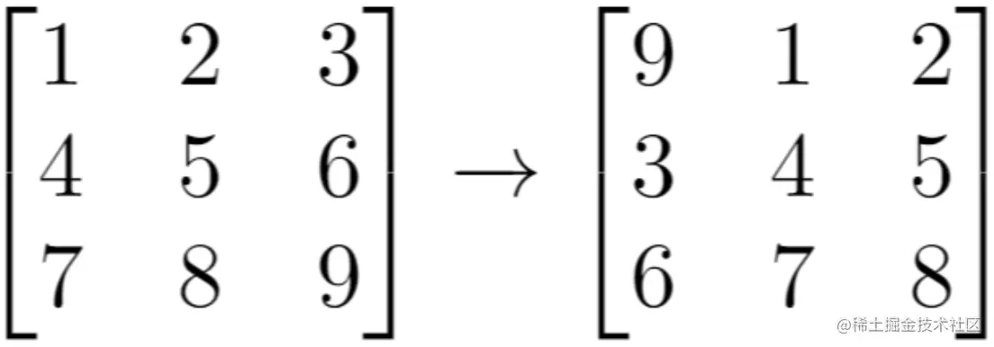 grid[m - 1][n - 1]的元素将会移动到grid[0][0]。