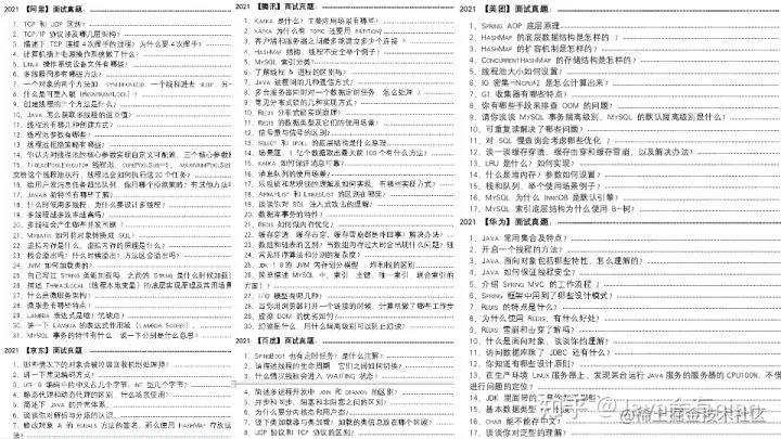 那咋办?只有学呗,不管是在什么时候,做题,都是最好的学习方法之一。 而不得不承认,大厂面试真题,很多时候,就是该技术领域最经典的基础知识和套路合集,非常值得一刷。