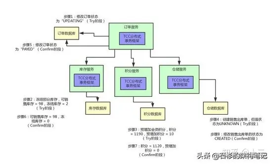 这个时候,就需要依靠TCC分布式事务框架来推动后续的执行了。