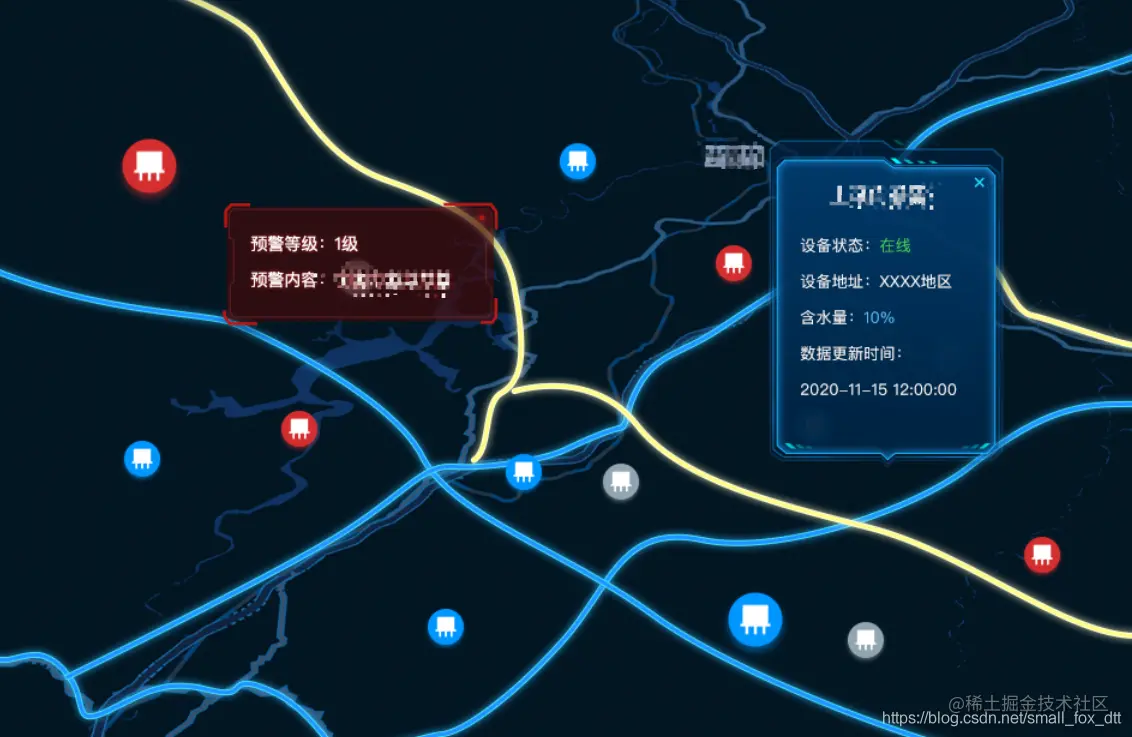 2、当后端推送设备消息时,地图出现信息弹框并且该设备点要出现缩放动画效果;