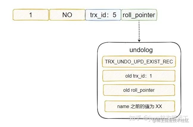 而 update 产生的 undolog 不一样,它的类型为 TRX_UNDO_UPD_EXIST_REC。