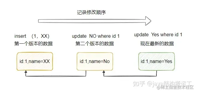 我:多版本并发控制,其实指的是一条记录会有多个版本,每次修改记录都会存储这条记录被修改之前的版本,多版本之间串联起来就形成了一条版本链。