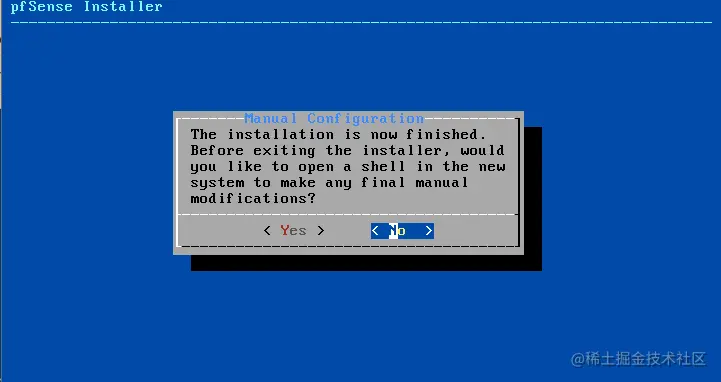 在开始安装过程之前,安装程序会给你最后一次机会来停止或编辑安装。如果你没有什么要修改的,按ENTER键开始Pfsense的安装。