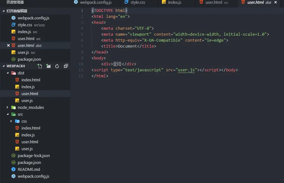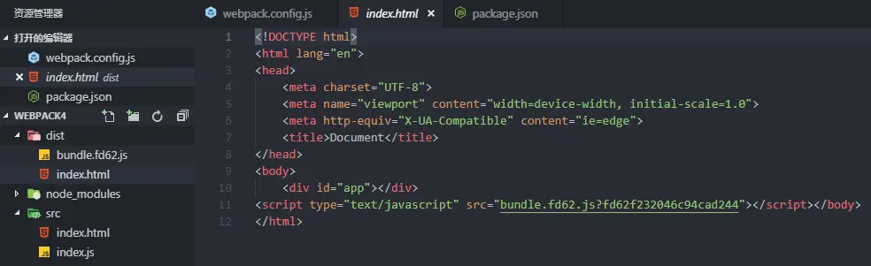 将html打包到dist目录,此时需要借助html-webpack-plugin插件