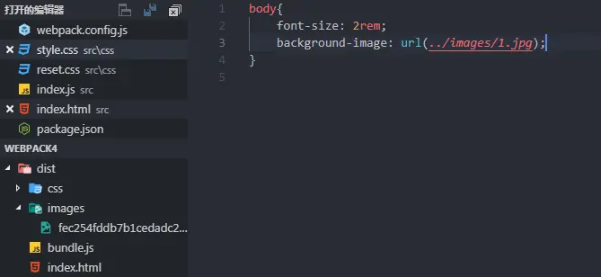 CSS文件建立好后,需要引入到入口文件中,才可以打包得到。在src/index.js首行引入