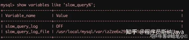 - 查看当前慢查询日志的开启情况: