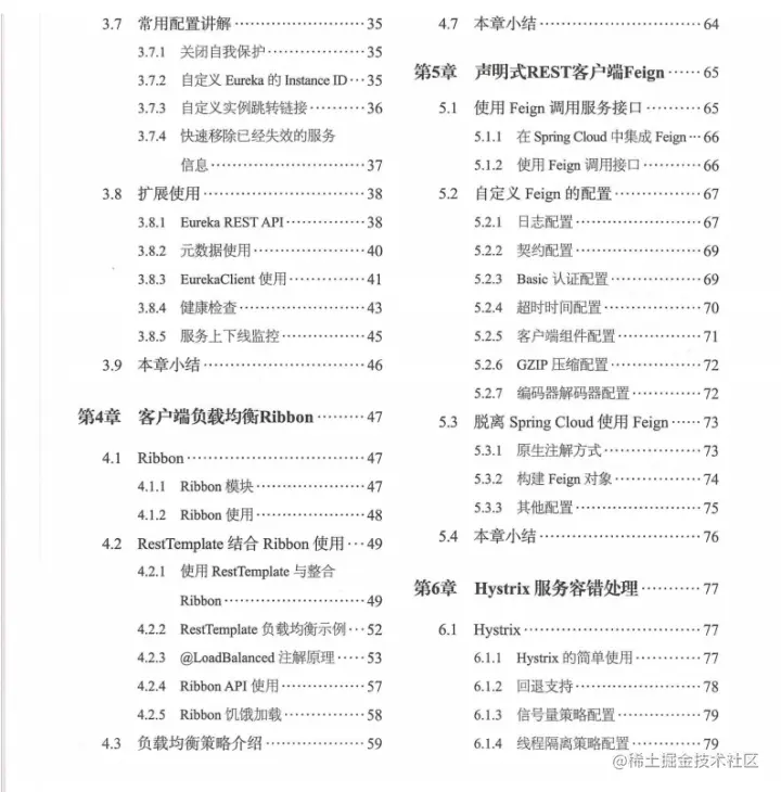 这一部分对Spring Cloud的各种常用模块进行了详细讲解,如注册中心Eureka、客户端负载均衡Ribban、声明式REST客户端Feign、熔断保护中间件Hystrix、负载均衢器Zuul等,掌握了这些内容,就基本上掌握了Spring Cloud的主要技术。