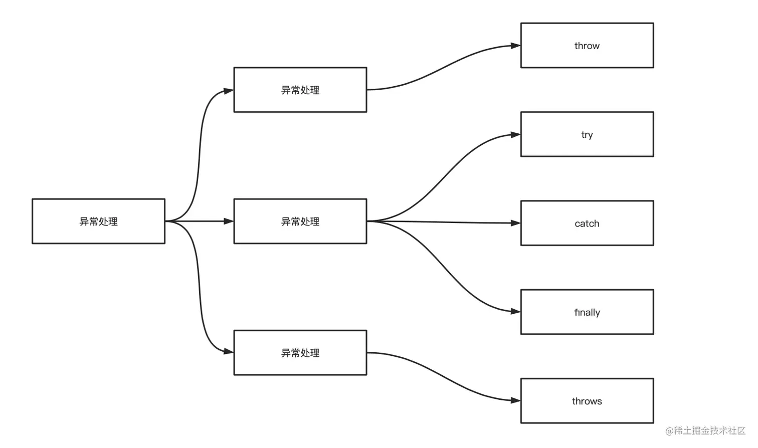 Java 通过面向对象的方法进行异常处理,一旦方法抛出异常,系统自动根据该异常对象寻找合适异常处理器(Exception Handler)来处理该异常,把各种不同的异常进行分类,并提供了良好的接口。在 Java 中,每个异常都是一个对