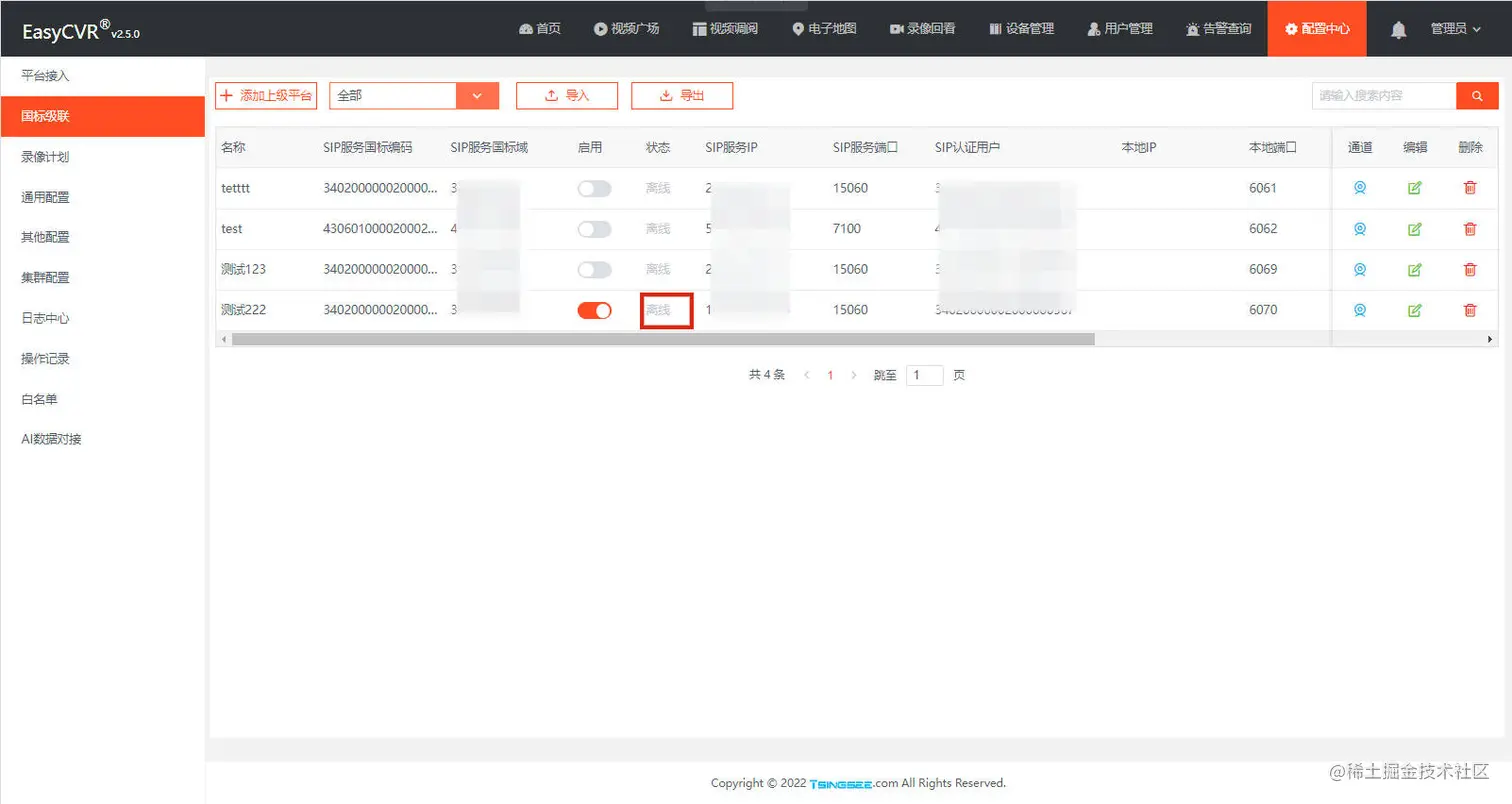 有用户反馈,EasyCVR重启服务器过后,出现了级联离线的情况,请求我们排查解决。