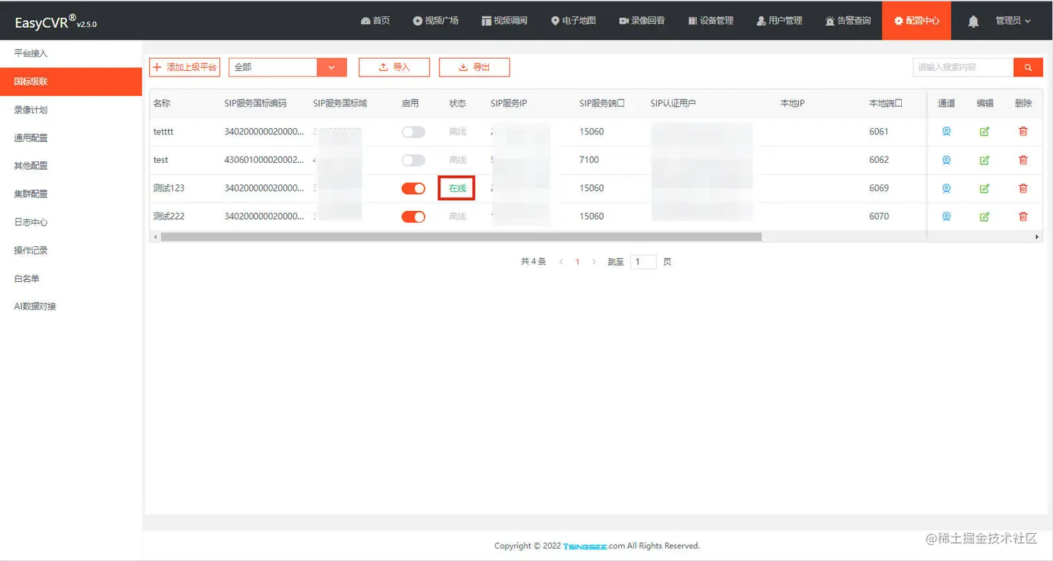 优化后,再次重启测试,此时平台级联已经显示正常了。