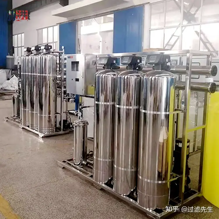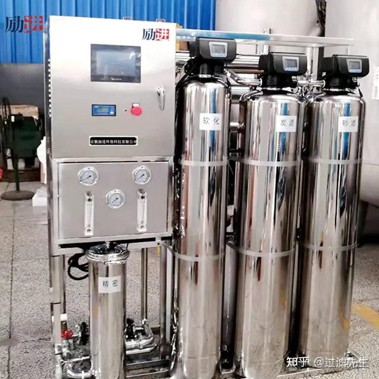 预处理部分:包括石英砂过滤器、活性炭过滤器、全自动软水器和精密过滤器。该预处理设备的主要作用是去除污染反渗透膜的物质。