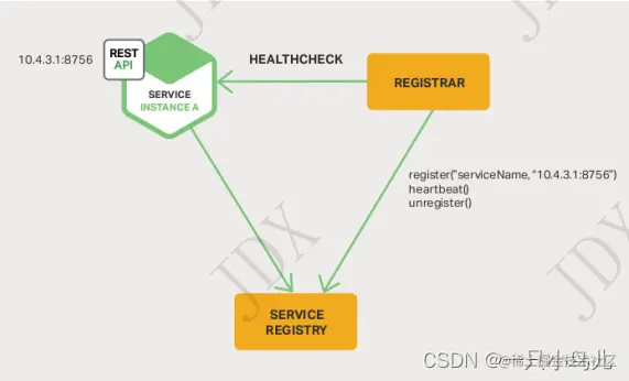 然后 Registrar 负责向注册中心发起注册工作。同时注册中心要维护与服务之间的心跳,当服务不