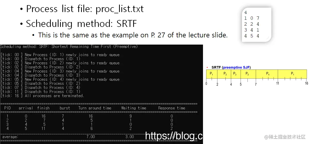printf("Scheduling method: Shortest Remaining Time First (Preemptive)\n");