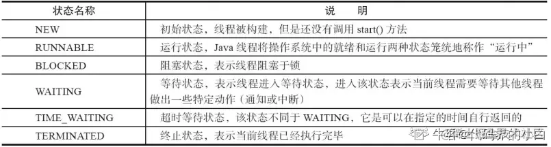 Java中线程生命周期分为新建(New)、运行(Runnable)、阻塞(Blocked)、无限期等待(Waiting)、有限期等待(Time Waiting)和结束(Terminated)这6种状态。