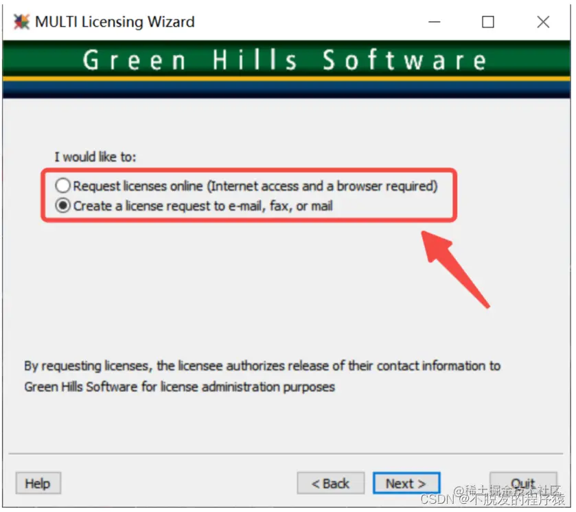 和国内代理Green Hills Software(GHS)的厂商沟通好,可选择在线申请或者邮箱申请,这里我使用邮箱申请,需要填写公司和Green Hills USB Dongle(软件加密狗)的基本信息(英文填写),如下图所示: