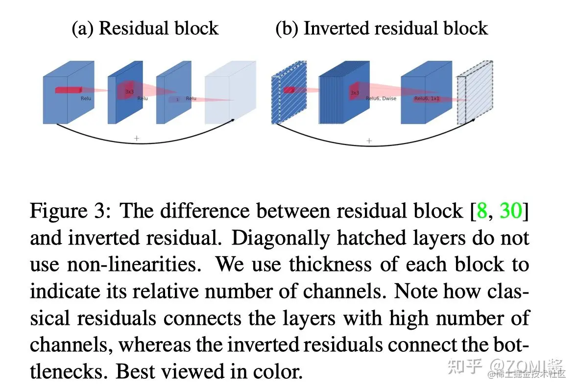 在设计网络结构的时候,想要减少运算量,就需要尽可能将网络维度设计的低一些,但是维度如果低的话,激活变换 ReLU 函数可能会滤除很多有用信息。然后作者就想到了,反正 ReLU 0以上的计算其实就是一个线性映射。那么如果全用线性分类器,会不会就不会丢失一些维度信息,同时可以设计出维度较低的层呢?