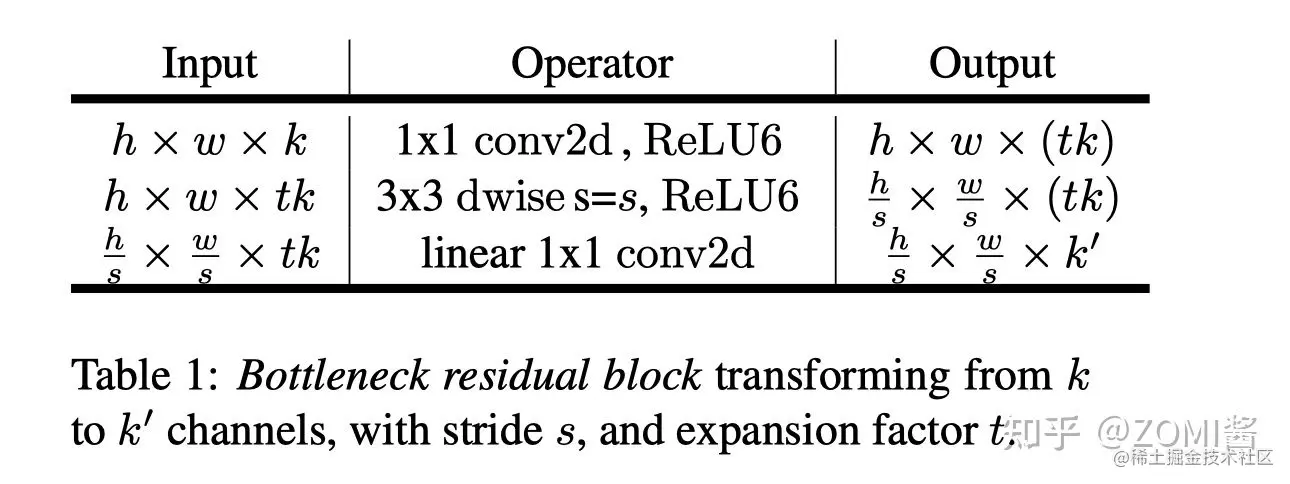 先通过 Expansion layer 来扩展维度,之后在用深度可分离卷积来提取特征,之后使用Projection layer来压缩数据,让网络从新变小。因为 Expansion layer 和 Projection layer 都是有可以学习的参数,所以整个网络结构可以学习到如何更好的扩展数据和从新压缩数据。