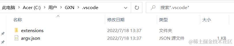 安装后,默认扩展安装的位置在这里(C盘用户.vscode文件夹)。