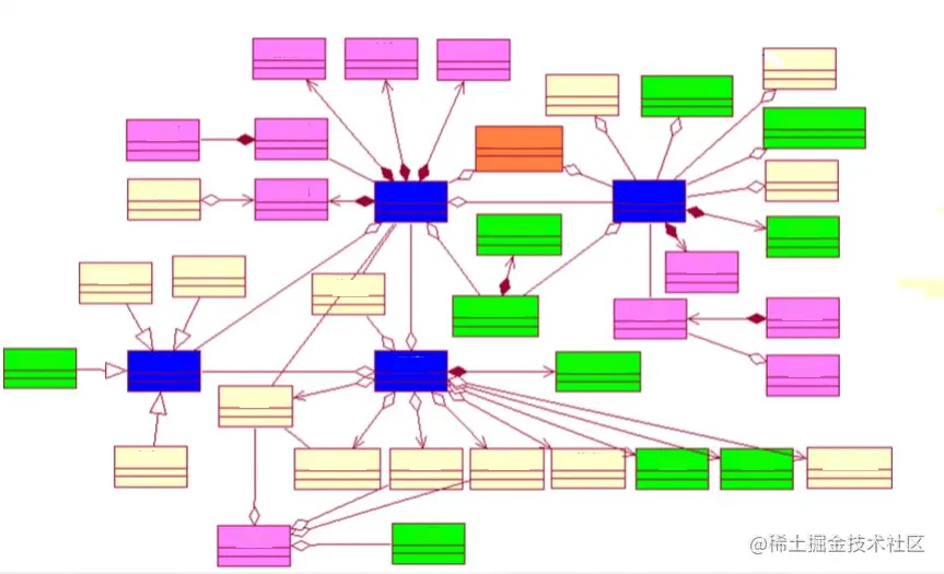 图8-127 学员发给我评点的一张带有大量菱形的类图(类的信息已隐去)