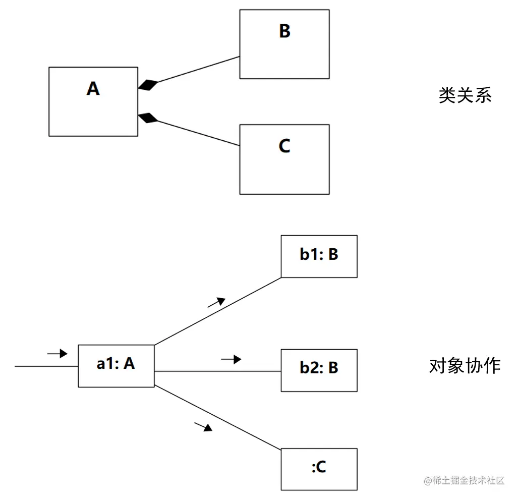 从元模型上看,“聚合”应该叫作“分享型聚合”,“组合”应该叫作“组合型聚合”,但本书还是使用“聚合”、“组合”,原因阅读后文自知。