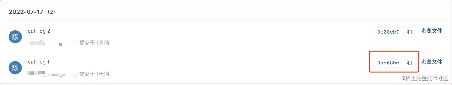 如上图,可以看到有2条记录,如果想要撤回log 1的提交代码,可使用 git revert <commit-hash> 进行回滚。
