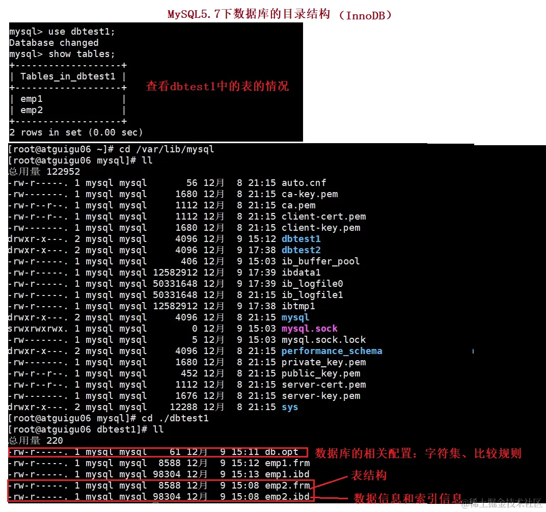 在与该数据库名同名的子目录下创建一个名为 db.opt的文件(仅限MySQL5.7及之前版本),这个文件中包含了该数据库的各种属性,比如该数据库的字符集和比较规则。
