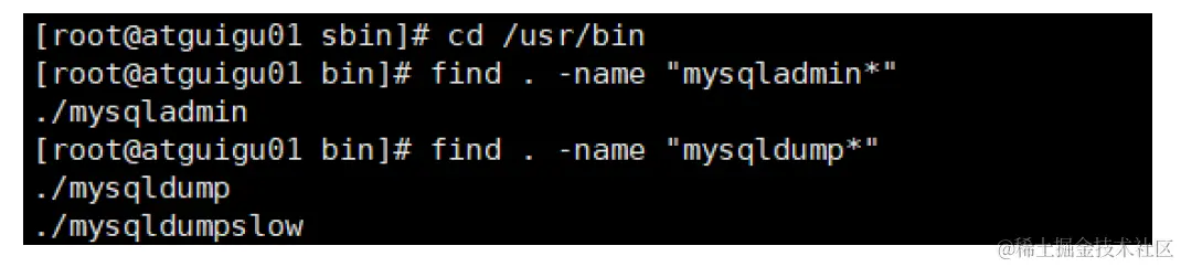 相关命令目录:/usr/bin(mysqladmin、mysqlbinlog、mysqldump等命令)和/usr/sbin。