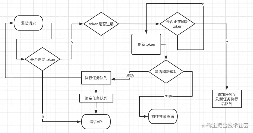 - 在请求发起前拦截每个请求,判断token的有效时间是否已经过期。若已过期,则将请求挂起,先刷新token后在继续请求。